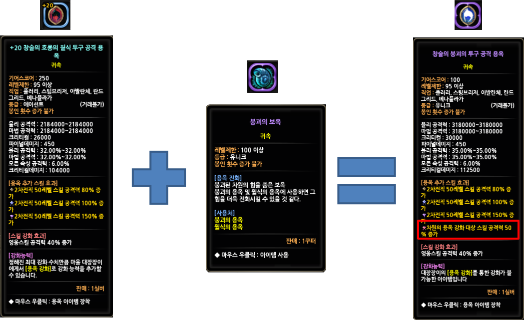 차원/이계의 용옥 강화 대상 스킬 공격력 10~50% 증가 |