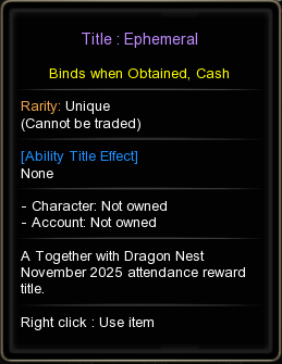 - Tickets regarding this event will be accepted before December 2024, Update Patch.