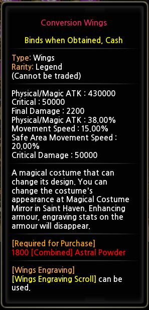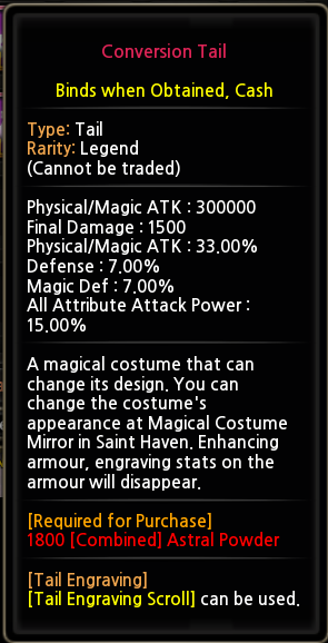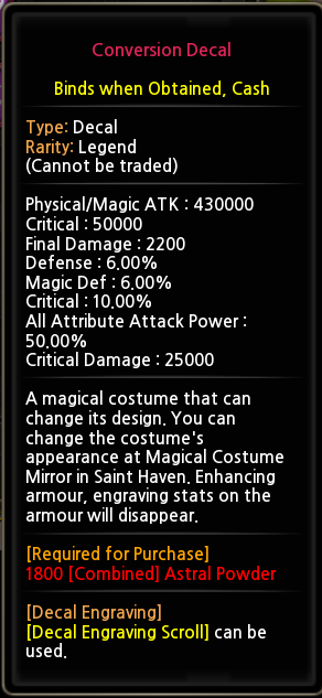 1. Stats provided to the costume by an Engraving Scroll will remain the same upon changing grades via growth.