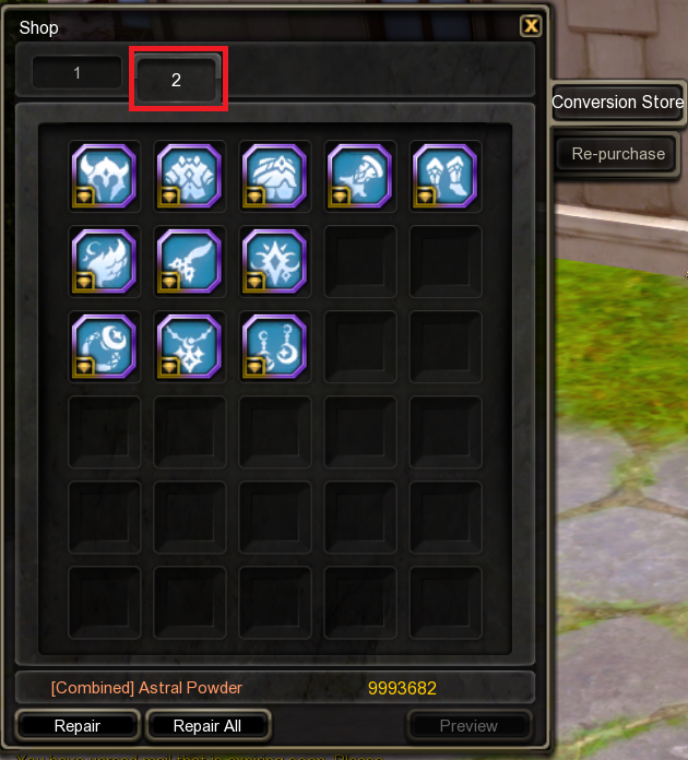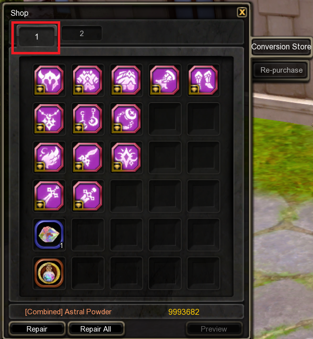 • Material items listed below are required to purchase Legend Conversion Costumes directly from the Conversion Shop in page 1