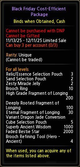 • Sale location : Inside Cash Shop, <Main - Dragon Nest PASS>