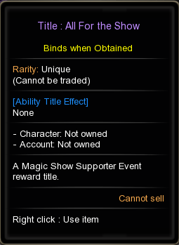 • Complete Magic Show Poster can be obtained as the reward for filling up the Incomplete Magic Show Poster completion gauge.