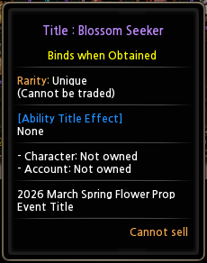 • Tickets regarding this event will be accepted before May 2026 Update Patch.
