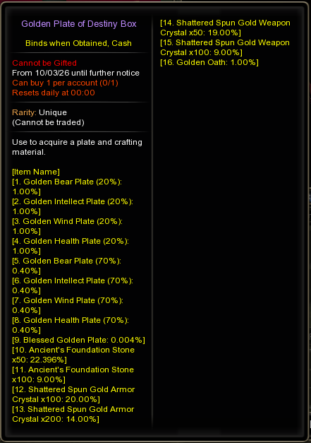 1. Physical/Magic Attack is randomly obtained within the range of 0.05%–10.00% in 0.05% increments.