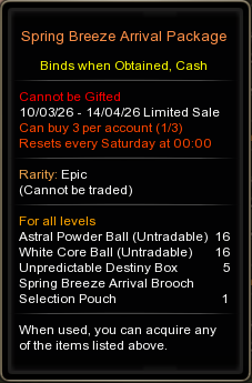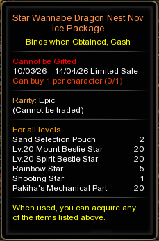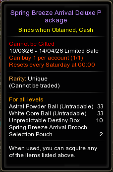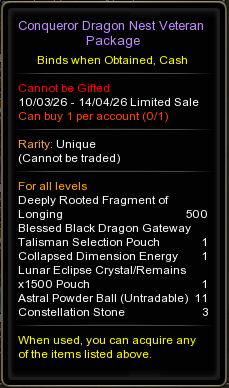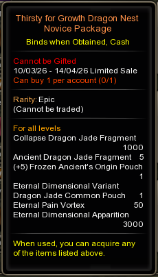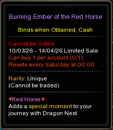 • Sale location : Inside Cash Shop, <Main - Dragon Nest PASS>