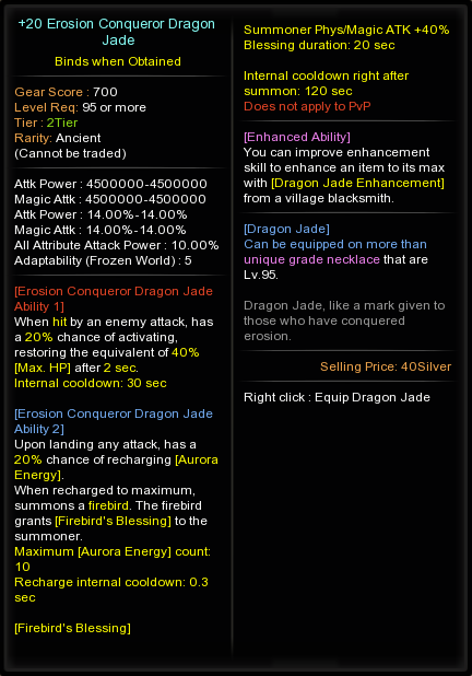 • Enhancing Erosion Conqueror Dragon Jade (Tier 2) will add an Attribute ATK add-on stat.